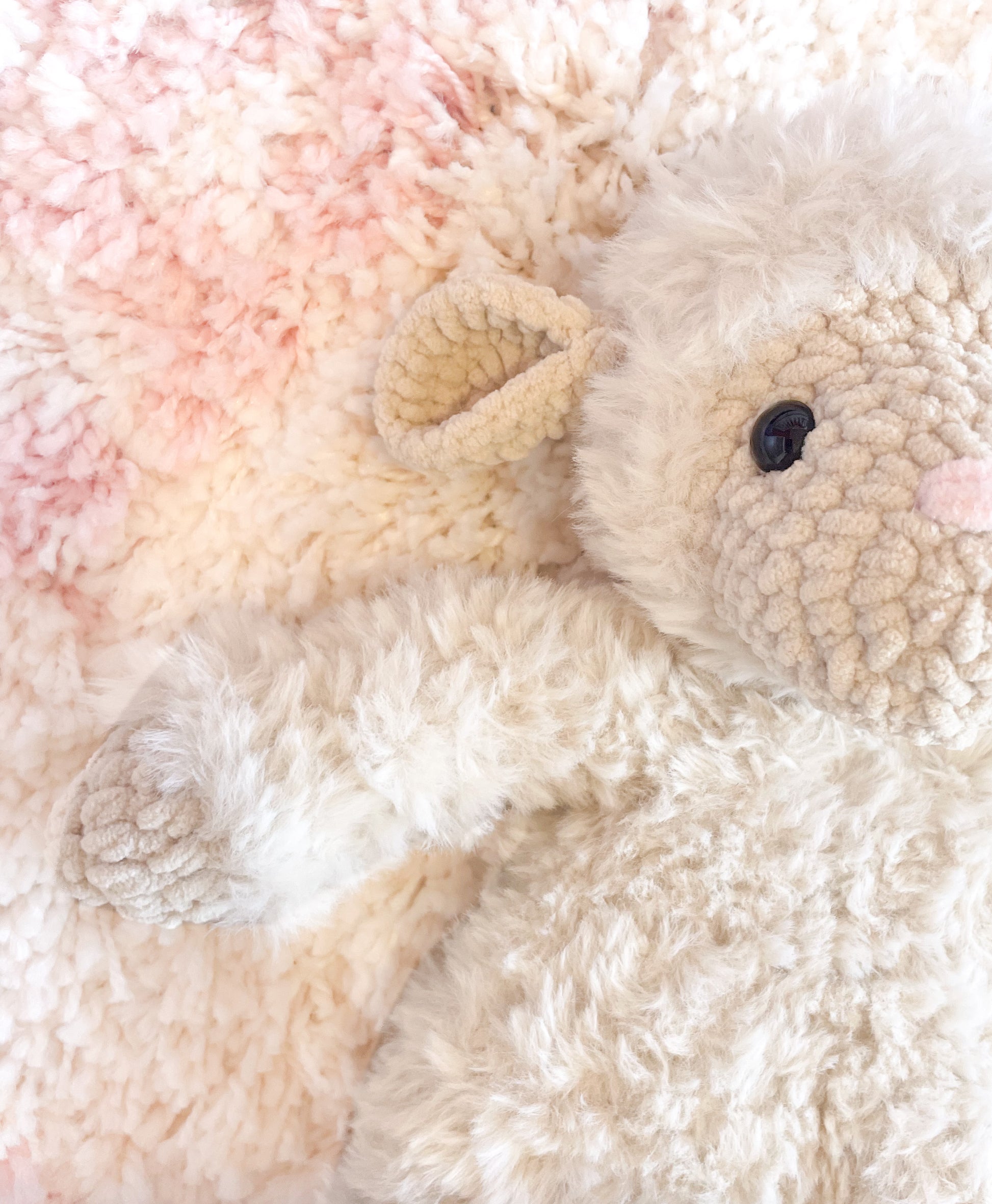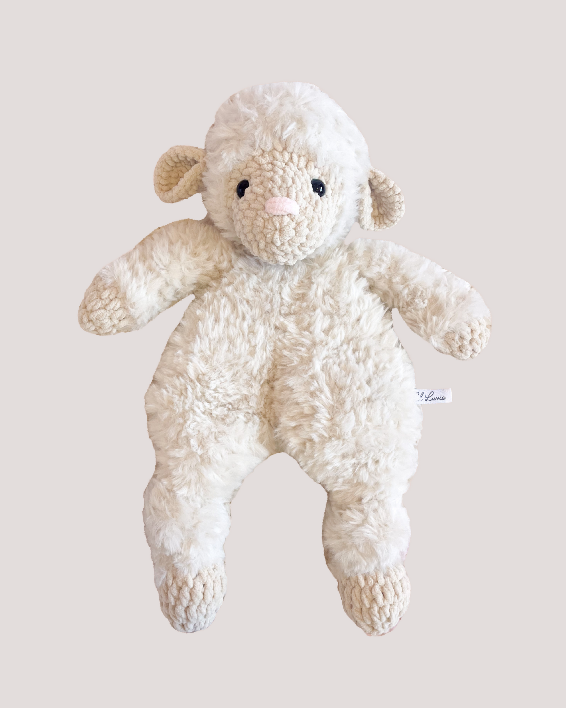 Our Lil Luvie Lamb is a Medium soft plushie, handmade by our team. We hope you love it as much as we do!
